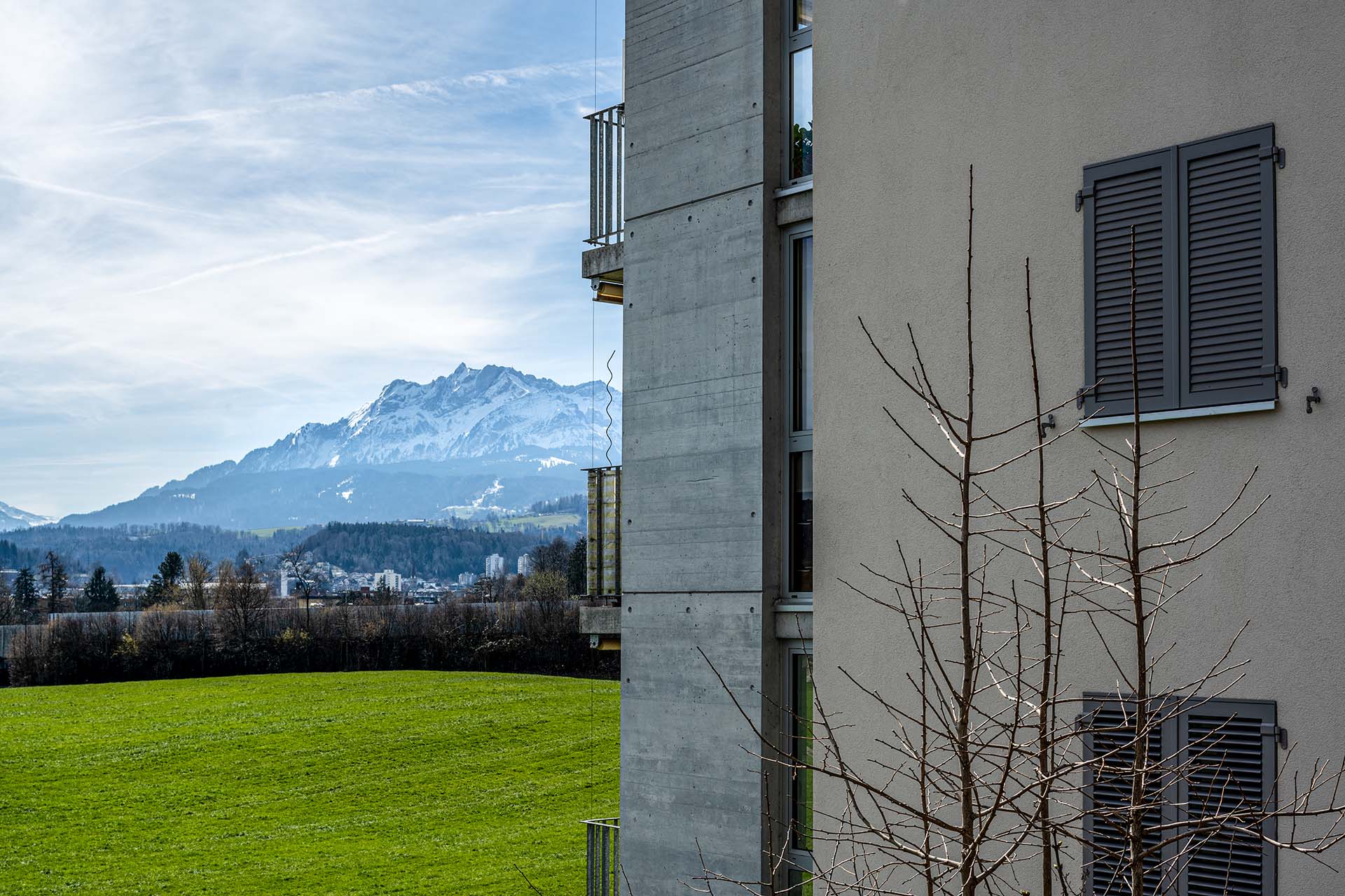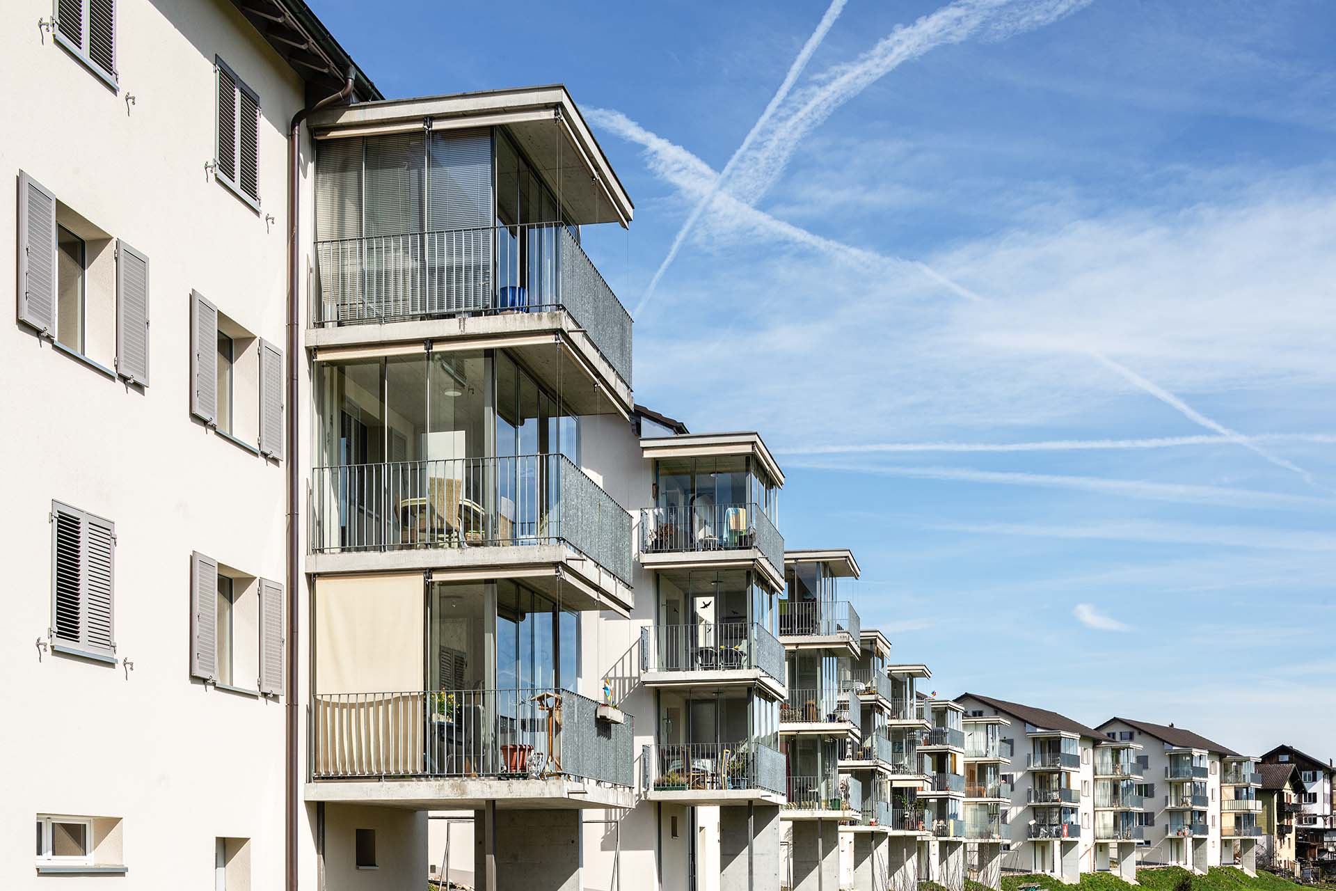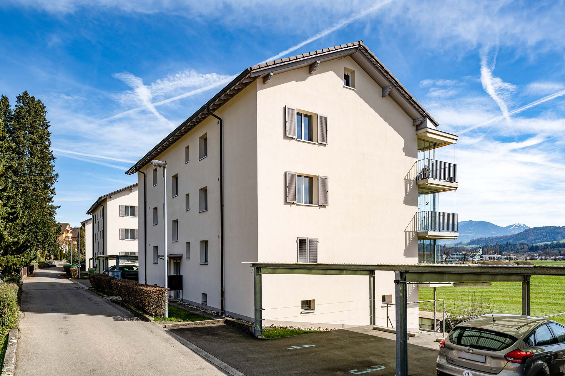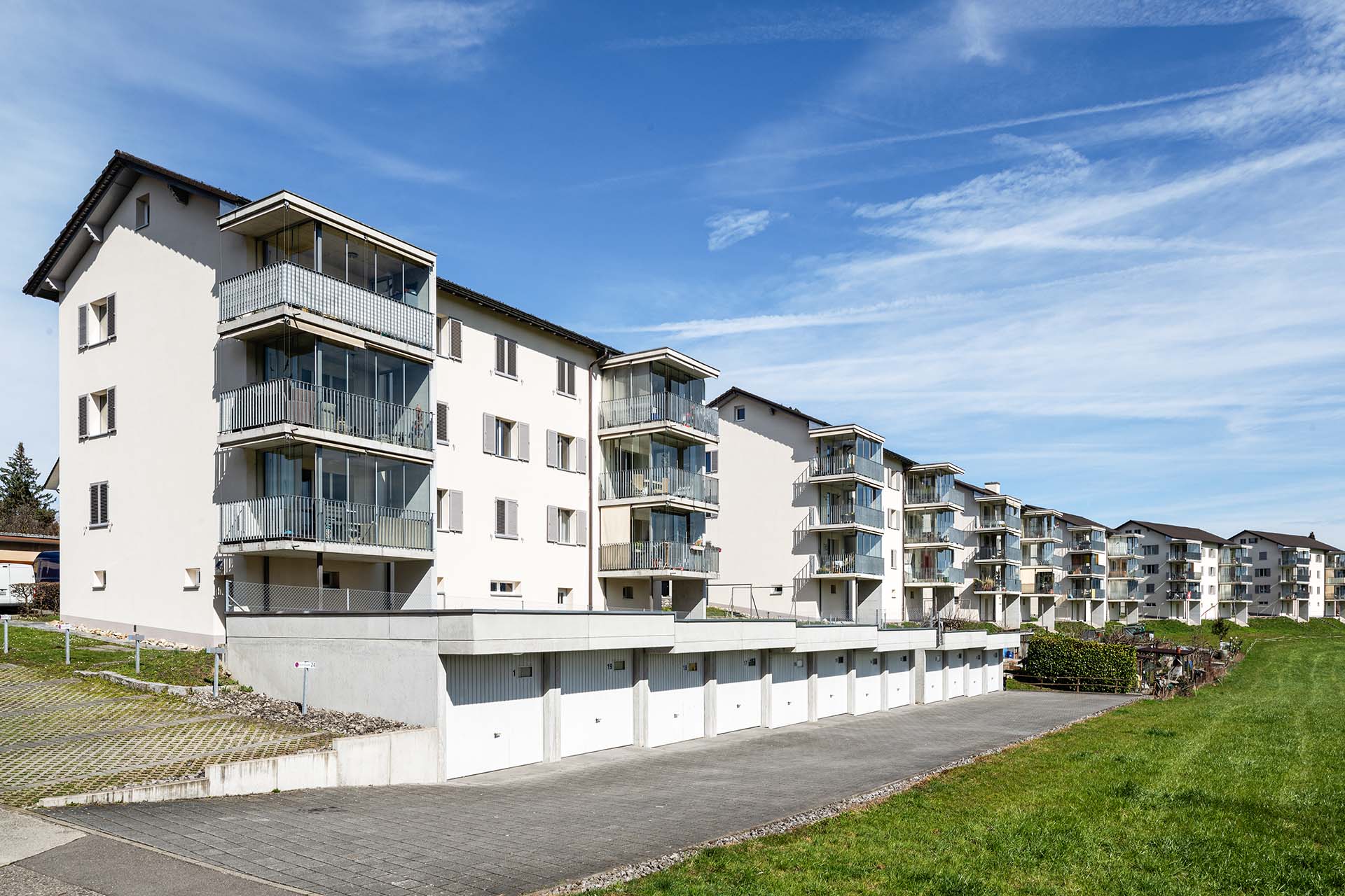 Wer die Nähe zu Wiesen und Feldern oder die Aussicht auf Berge mag, wird sich in den Liegenschaften an der Rütistrasse wohlfühlen. Die Wohnungen in den Mehrfamilienhäusern eignen sich sowohl für Einzelpersonen wie auch für Paare und Familien. Ganz in der Nähe befindet sich das Hallen- und Freibad Mooshüsli.